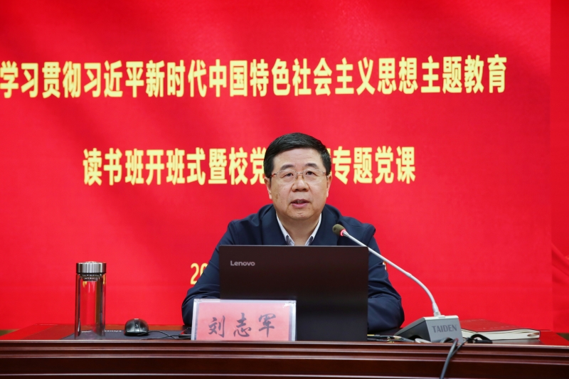 刘志军以《深入学习贯彻习近平新时代中国特色社会主义思想 为奋进新征程凝心聚力铸魂》为题作专题党课。他强调,习近平新时代中国特色社会主义思想是引领新时代、奋进新征程的科学理论指南,必须长期坚持、毫不动摇;是中国共产党人的世界观和方法论,必须学思用贯通、知信行合一;要以习近平新时代中国特色社会主义思想为根本遵循,加快推进“双一流”创建,推动学校事业高质量发展。