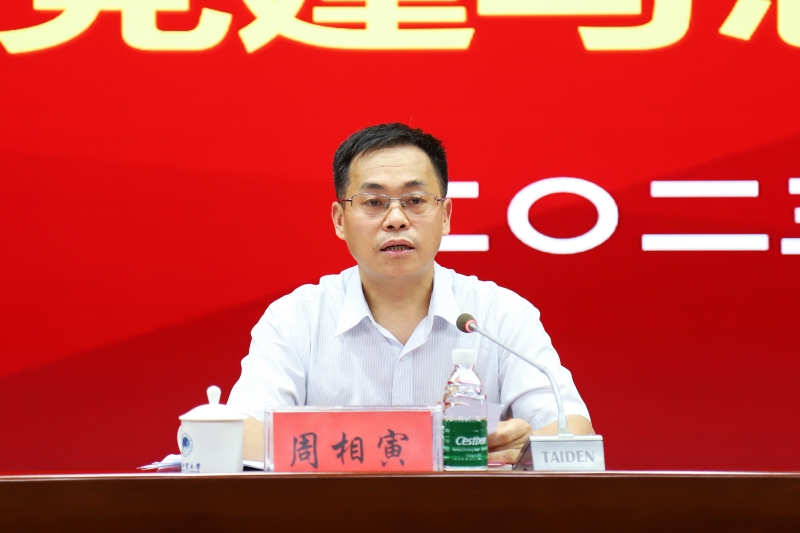 校长李成伟在主持会议时指出,刘志军书记的讲话分析了当前学校党建与思想政治工作面临的新形势新任务,研究部署了当前和今后一个时期的工作,并向全校各级党组织、全体共产党员和广大师生员工提出了具体要求。希望学校全体党员和广大师生员工时刻胸怀“国之大者”,牢记为党育人、为国育才的初心使命,立足岗位,锚定发展新目标,坚持守正创新、保持战略定力、发扬斗争精神、勇于攻坚克难,以实际行动努力创造无愧于党、无愧于人民、无愧于时代的新业绩。