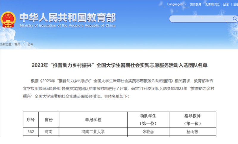 近日,教育部发布《2023年“推普助力乡村振兴”全国大学生暑期社会实践志愿服务活动入选团队名单》,我校“筑梦远航”实践团队成功入选。
