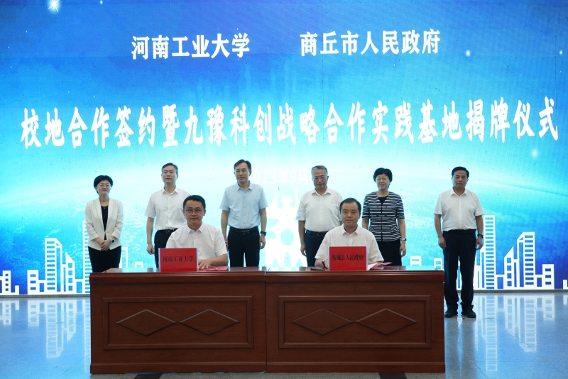 在与会领导的见证下,我校与商丘市政府签署了河南工业大学商丘产业技术研究院(商丘产业创新发展研究院)合作共建协议,与柘城县人民政府签署了战略合作协议。