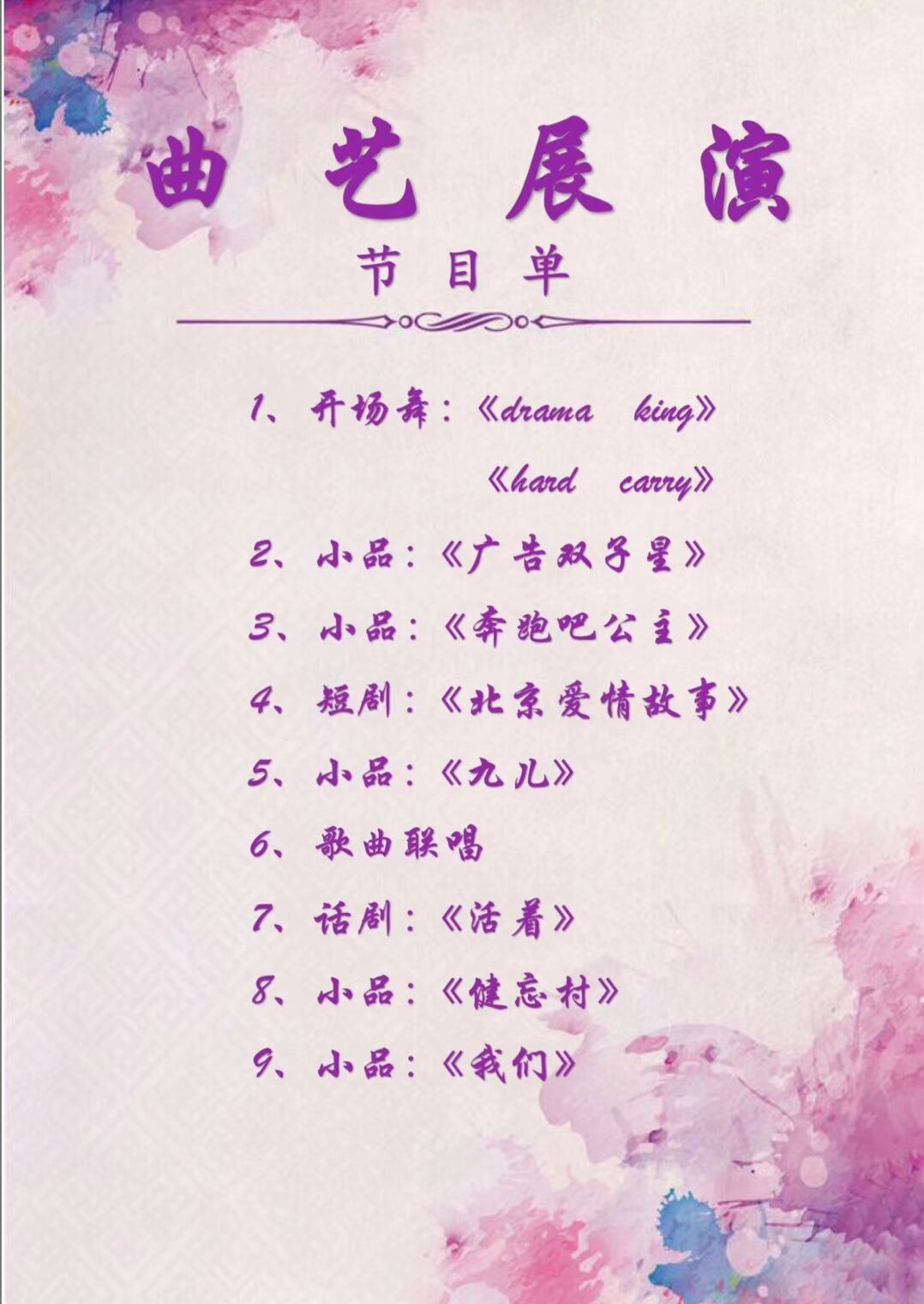 一、演出单位:校大学生艺术团二、演出时间: 2018年12月18日(周二)19:00三、演出地点:莲花街校区学生事务中心25201多功能活动厅欢迎全校师生到场欣赏!