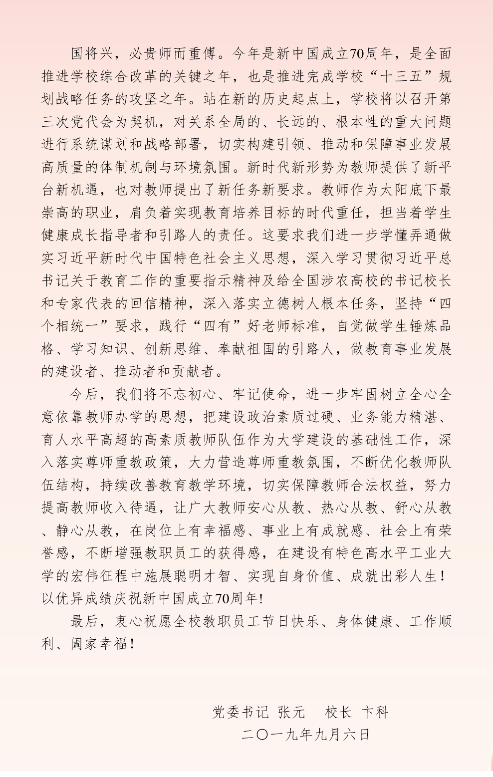上一条:关于2019年中秋节放假的通知 下一条:关于加强2019年教师节、中秋节、国庆节期间廉洁自律工作的通知